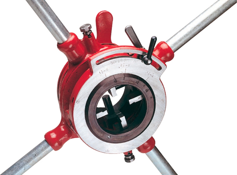 Клупп трубный регулируемый Super-Ego 662 Set 1 1/2"-3" BSPT R (Супер-Эго 662 Сет 1 1/2"-3" БСПТ Р) предназначен для быстрой и качественной нарезки правой конической трубной резьбы BSPT R на стальных трубах Ø 1 1/2" – 3" на стройплощадке при монтаже систем газо- и водоснабжения, отопления, в котлостроении и производстве.