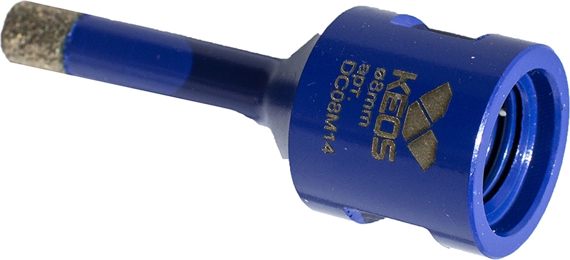 Коронка алмазная по керамограниту Keos Professional Vacuum Brazed M14 8 мм (Кеос Профессионал Вакуум Брейзед М14 8 мм) – корончатое сверло для сверления отверстий Ø 8 мм в керамической плитке, керамограните, граните, мраморе и других видах камня, как на сухую, так и с охлаждающими жидкостями, с использованием сетевых электрических и аккумуляторных УШМ.