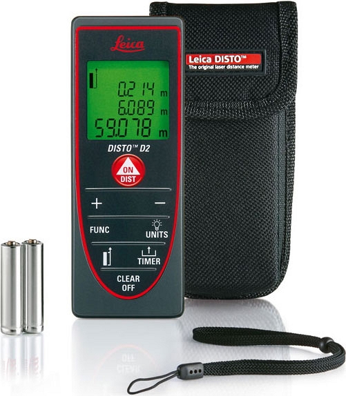 Лазерный дальномер Leica Disto D2 (Лейка Дисто Д2) — это модель дальномера имеющая небольшие размеры предназначенная для выполнения различных замеров до 60 метров в помещениях. Имеет большое количество функций и возможность замера из углов за счет откидной скобы. Быстрота и точность выполнения замеров. Самый доступный дальномер в линейке Leica DISTO.