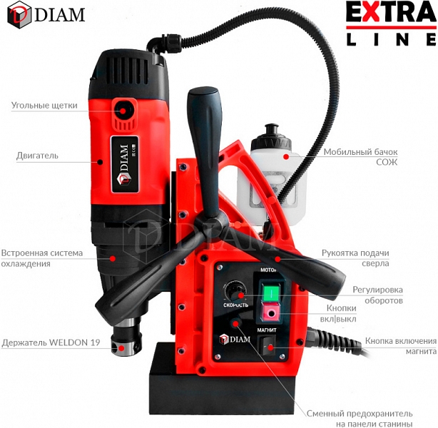Цена и технические характеристики магнитного сверлильного станка Diam EX-50E: