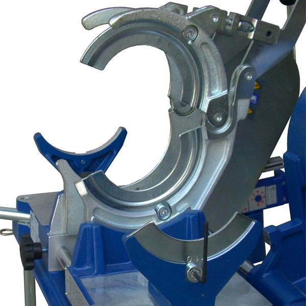- Мощная станина центратора и конструкция хомутов с ребрами жесткости обеспечивают идеальную параллельность хомутов и соосность труб при создании сварного усилия