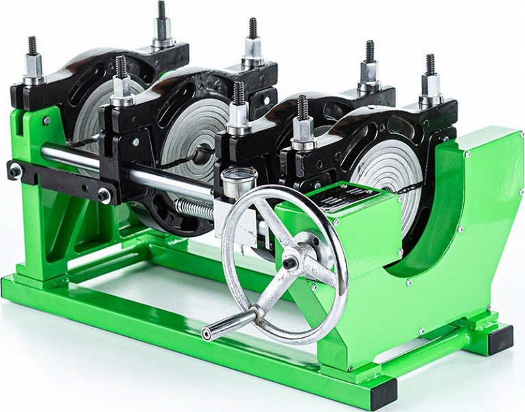 - Механическое управление оснащено редуктором и манометром, контролирующим давление во время стыковки труб