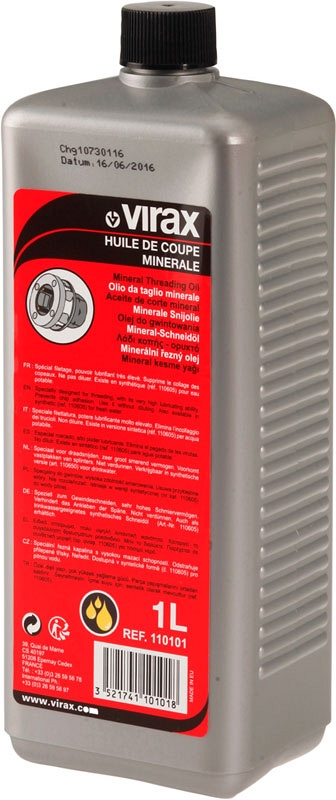 Минеральное резьбонарезное масло Virax 1 л (Виракс 1 л) разработано для высокопроизводительной нарезки резьбы и предназначено как для работы с ручными и электрическими клуппами, так и с резьбонарезными и сверлильными станками.
