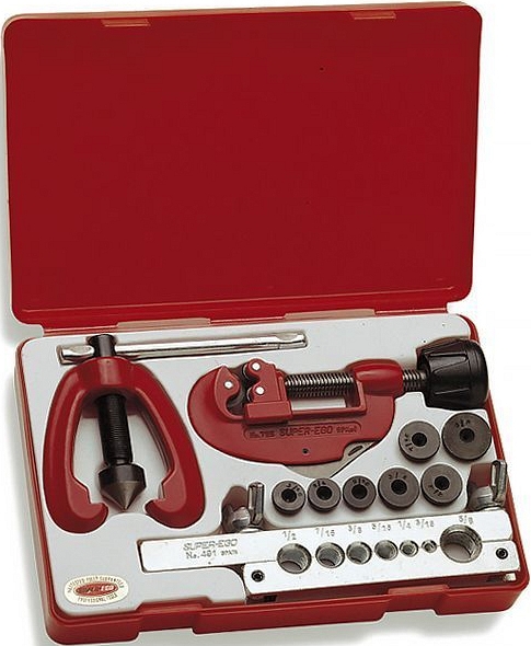 Набор для резки и развальцовки труб Super-Ego DB 4-4,75-6-8-10-12-14 мм (Супер-Эго ДБ 4-4,75-6-8-10-12-14 мм) предназначен для резки труб Ø 3 – 30 мм (1/8" – 1 1/8") и развальцовки труб Ø 4, 4.75, 6, 8, 10, 12, 14 мм, под углом 45° (изготовления точных, качественных, простых одинарных и двойных бортиков), из меди, латуни и алюминия, при монтаже систем водоснабжения, газоснабжения, отопления, кондиционирования и в холодильной технике.