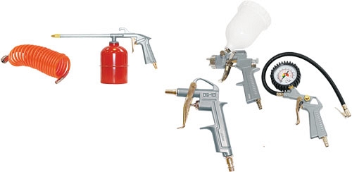 - Расход воздуха краскопульта — 160 л/мин, пистолета для вязких жидкостей — 130 л/мин, пистолета для продувки — 125 л/мин, пистолета для подкачки шин — 140 л/мин