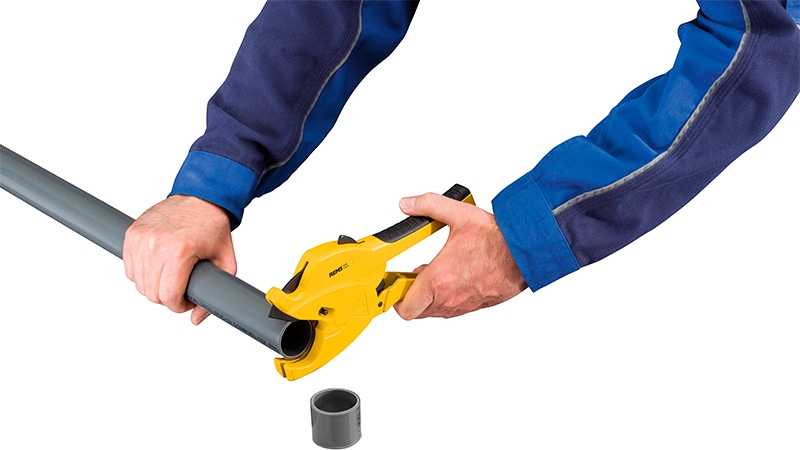 - Отрез ровно под прямым углом и без грата, благодаря точному упору трубы и клиновидному лезвию