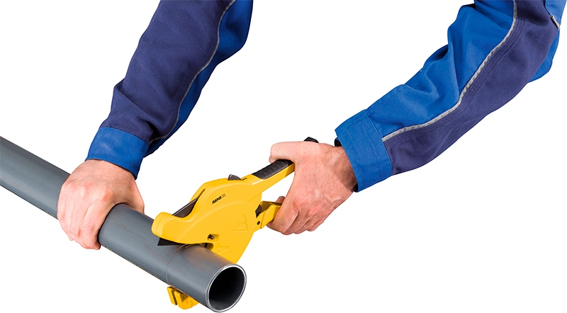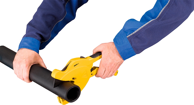 - Отрез ровно под прямым углом и без грата, благодаря точному упору трубы и клиновидному лезвию