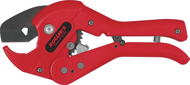 Ножницы для пластиковых и металлопластиковых труб Roller Picco P 42 S (Роллер Пикко П 42 С) с храповым механизмом и быстрым возвратом предназначены для резки пластиковых и металлопластиковых труб Ø до 42 мм (1 5/8"), любой толщиной стенки.