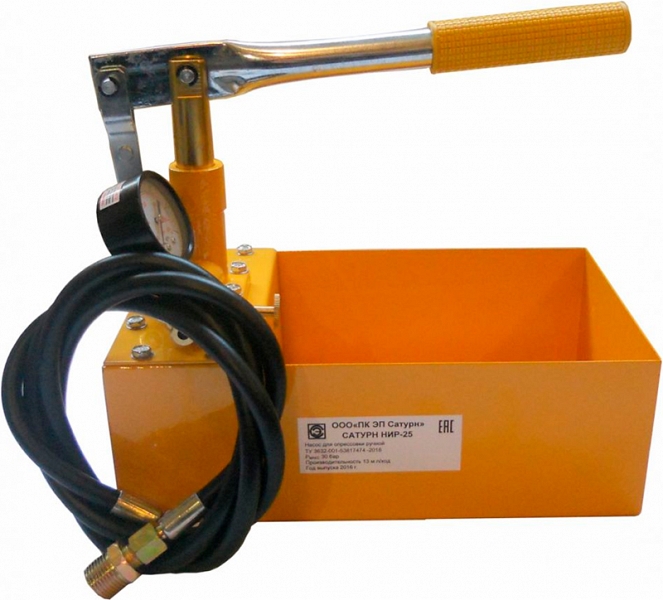 Опрессовщик ручной с манометром Сатурн НИР-25 – гидравлический опрессовочный насос для быстрой и точной опрессовки, заполнения, проверки давления и герметичности масляных, водяных и антифризных систем трубопроводов и резервуаров.