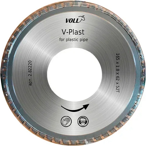 Отрезной диск по пластику для электрического трубореза Voll V-Plast (Волл В-Пласт) предназначен для резки пластиковых (PVC / ПВХ, HDPE / ПВД, PP / ПП, PPR / ППР) труб с использованием электрических труборезов V-Cut 270E / 400E и аналогичных моделей от других производителей.