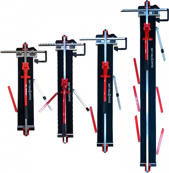 Плиткорез ручной профессиональный Diam ProLine-1000L (Диам ПроЛайн-1000Л) предназначен для прямой (до 1000 мм) и диагональной (до 705 × 705 мм) резки керамической плитки одинарного и двойного обжига, керамогранита (каменно-керамических плит), толщиной 7 – 16 мм.