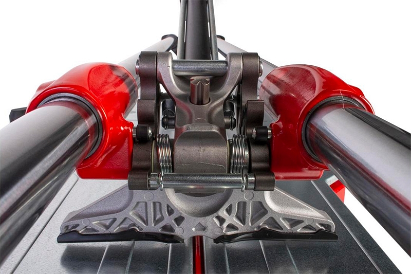 - Диаметр трубчатых стальных направляющих составляет 30 мм, толщина стенок 2 мм. Каретка на алюминиевых удлиненных втулках. Максимальная конструктивная прочность. Выдвинутое положение роликового резца улучшает видимость линии разметки разлома. Подвижный алюминиевый разделитель, оснащенный пластиковыми защитными прокладками, предупреждающими повреждение лицевой части керамики. Разделитель оперируется 1 рукой.