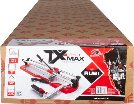 Плиткорез ручной Rubi ТХ-1250 МAX (Руби ТХ-1250 МАКС) – профессиональный ручной плиткорез с мощным подвижным разделителем для профессиональной резки любого типа керамики длиной до 1250 мм, диагональю до 850 × 850 мм, толщиной 3 – 21 мм. Идеален для резки керамогранита и экструдированного греса.