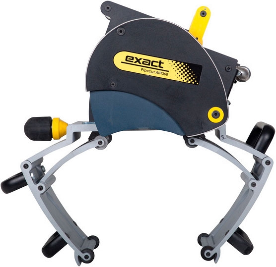 Высокопрофессиональный пневматический труборез Exact PipeCut AIR 360 (Экзакт ПайпКат АИР 360) предназначен для быстрой и безопасной резки всех материалов (сталь, все виды пластиков, нержавейка, чугун, алюминий и других) труб Ø 110 – 360 мм (4" – 15"), толщиной стенки до 45 мм (1,8"). Используется в основном в траншеях при прокладке трубопроводов, а также на опорах для труб при разделке труб, как и любой другой электрический труборез Exact.