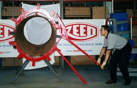 Поворотный роторный труборез Reed Rotary Cutter RC36S (Рид Ротари Каттер РЦ36С) предназначен для холодной искробезопасной резки труб больших диаметров из стали и нержавеющей стали (schedule 40) Ø 813 – 915 мм (32" – 36"), а также ковкого и литого чугуна (с дополнительными отрезными роликами) Ø 813 – 915 мм (30") в стесненных условиях, в котлованах, под водой, во взрывоопасной атмосфере (холодная резка), в местах, где запрещен шум, на трубных эстакадах и т.д.