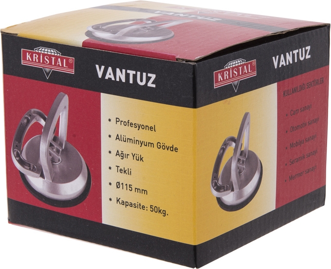 Присоска вакуумная одночашечная Kristal 115 мм (Кристал 115 мм) предназначена для перемещения и ручной транспортировки гладких пластин из натуральных и искусственных каменных материалов. Позволяет надежно и безопасно удерживать и переносить листовое стекло, а также пластик. Цена относительно невелика, поэтому позволяет приобретение небольшими мастерскими и индивидуальными мастерами.