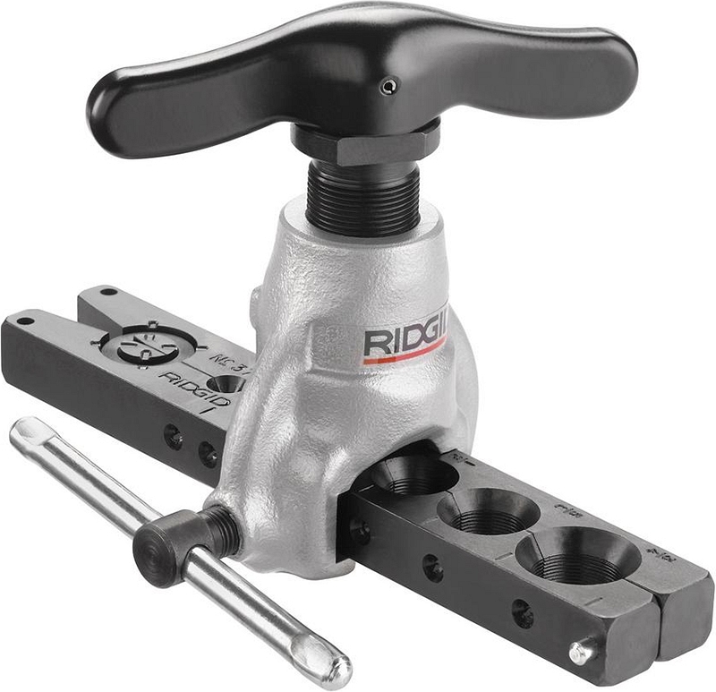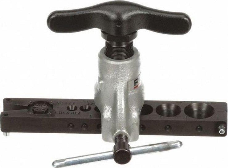Развальцовка с храповым механизмом Ridgid 377 (Риджид 377) – высокоточный инструмент с трещоточным механизмом для развальцовки, эксцентриковый развальцовщик с трещоткой для развальцовки под углом 37° (создания SAE-раструбов 37°) алюминиевых, отожженных медных, стальных, нержавеющих стальных, твердых медных, латунных труб Ø 3/16", 1/4", 5/16", 3/8", 1/2", 5/8", 3/4", толщиной стенки до 0,9 мм (0,035").