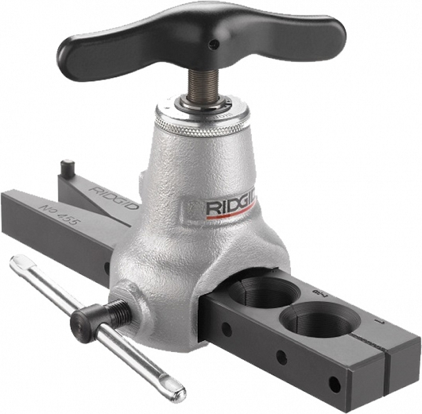 Развальцовка с храповым механизмом Ridgid 454W (Риджид 454В) – высокоточный инструмент с трещоточным механизмом для развальцовки, эксцентриковый развальцовщик с трещоткой для развальцовки под углом 45° (создания SAE-раструбов 45°) алюминиевых, отожженных медных, стальных, нержавеющих стальных, твердых медных, латунных водопроводных труб Ø 3/8", 1/2", 3/4", 1" с номинальным размером по SAE.