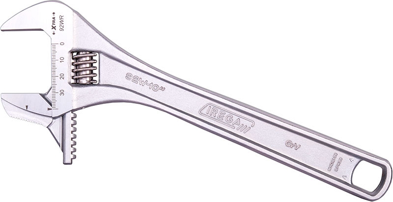 - Реверсивная съемная губка с Xtra широким раскрытием позволяет одновременно удобно работать с гайками большого размера и трубами большого диаметра одним разводным ключом