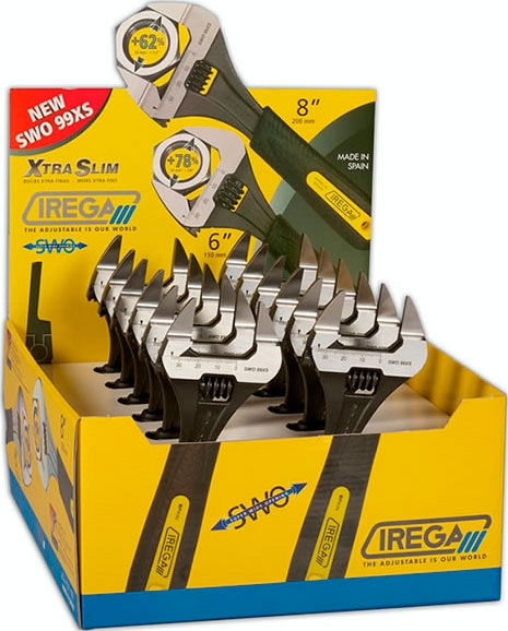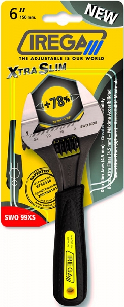 Разводной ключ с тонкими губками Irega ErgoTop SWO 99XS-6" (Ирега ЭргоТоп СВО99ХС-6") с супер широким раскрытием 34 мм (1 3/8") и экстра тонкими губками толщиной 4,5 мм предназначен для обслуживания, ремонта, сантехнических работ в системах отопления, кондиционирования, холодильной технике и т.д.