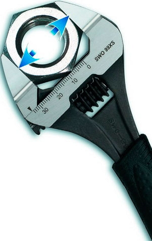 - Супер широкое раскрытие губок (Super Wide Opening – SWO) – 34 мм (1 3/8"): на 78% шире, чем у аналогичных по раскрытию губок стандартных разводных ключей!