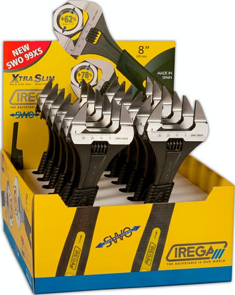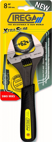 Разводной ключ с тонкими губками Irega ErgoTop SWO 99XS-8" (Ирега ЭргоТоп СВО99ХС-8") с супер широким раскрытием 39 мм (1 1/2") и экстра тонкими губками толщиной 4,5 мм предназначен для обслуживания, ремонта, сантехнических работ в системах отопления, кондиционирования, холодильной технике и т.д.