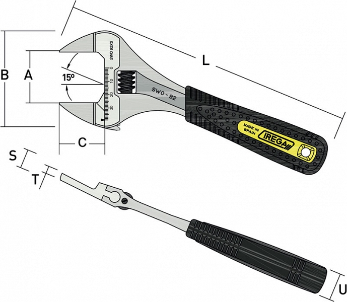 - Супер широкое раскрытие губок (Super Wide Opening – SWO) – 39 мм (1 1/2"): на 62% шире, чем у аналогичных по раскрытию губок стандартных разводных ключей!