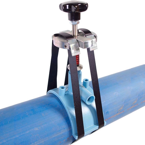 Ремешковый сварочный позиционер для седелок Advance Welding 32-500 мм (Эдванс Велдинг 32-500 мм) предназначен для фиксации седелки на пластиковой трубе Ø 32 – 500 мм при необходимом давлении до и во время процесса электромуфтовой сварки.