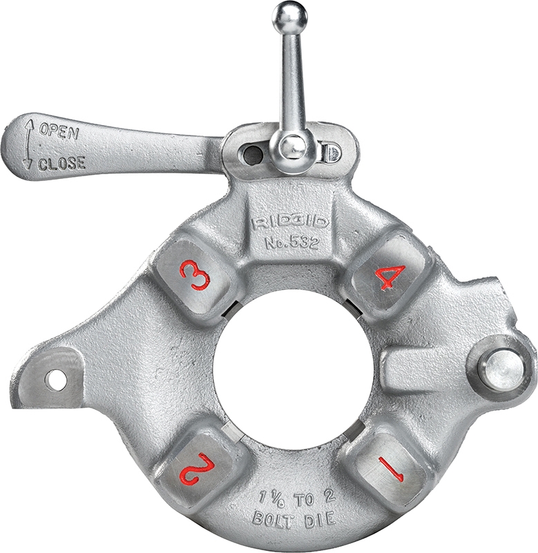 Резьбонарезная голова для станка для болтов Ridgid 532 (Риджид 532) предназначена для нарезки правой / левой болтовой резьбы Bolt R / L на болтах Ø 1 1/8" – 2" на резьбонарезных станках Ridgid 300, 300 Compact, 300-A с кареткой, 535, 535А, 1233 и других производителей в промышленной отрасли.