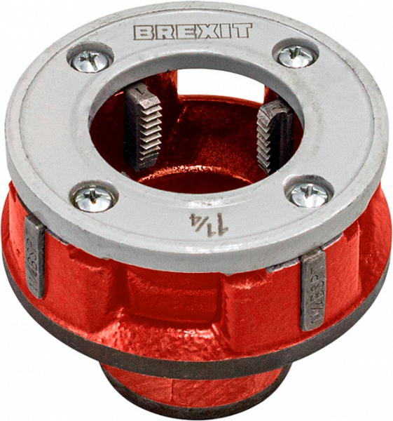 Резьбонарезная головка для электрического клуппа Brexit BSPT R SS 1 1/2" (Брексит БСПТ Р СС 1 1/2") предназначена для нарезки правой трубной конической резьбы BSPT R на стандартных черных стальных водопроводных и газопроводных трубах Ø 1 1/2". Подходит к электрическим резьбонарезным клуппам Brexit, а также других производителей (совместимость обязательно уточняйте у специалистов!).