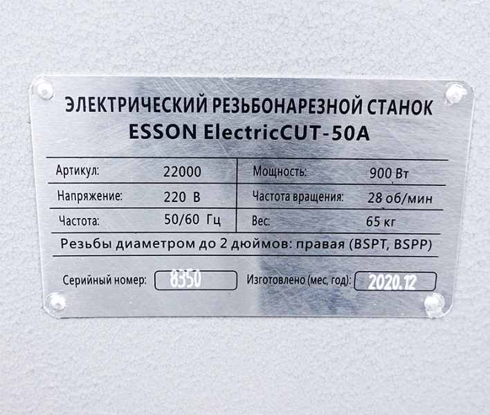 Цена и технические характеристики резьбонарезного станка Esson ElectricCut-50А: