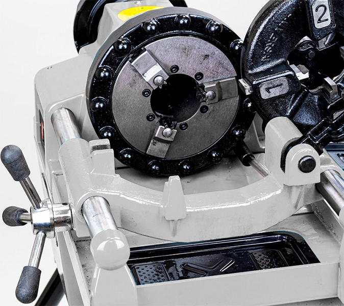 - Может быть укомплектован резьбонарезными головами с гребенками: BSPP, NPT, Metric (дополнительные опции!)