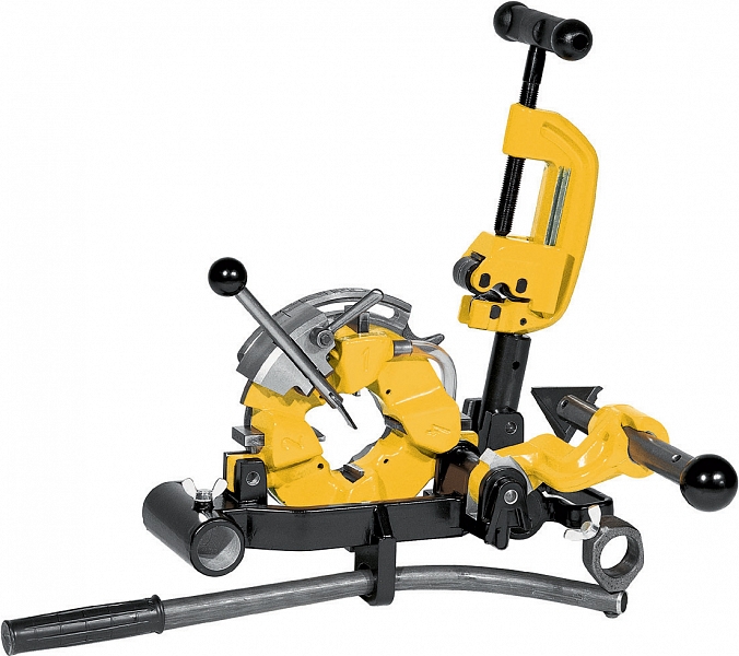 Самоцентрирующий. Надежная рама из кованной стали. Эргономичная, широкая ручка для мощной подачи шпинделя. Режущий диск изготовлен из надежной, каленой специальной стали для резки труб, для длительного срока эксплуатации. - Трубный гратосниматель: