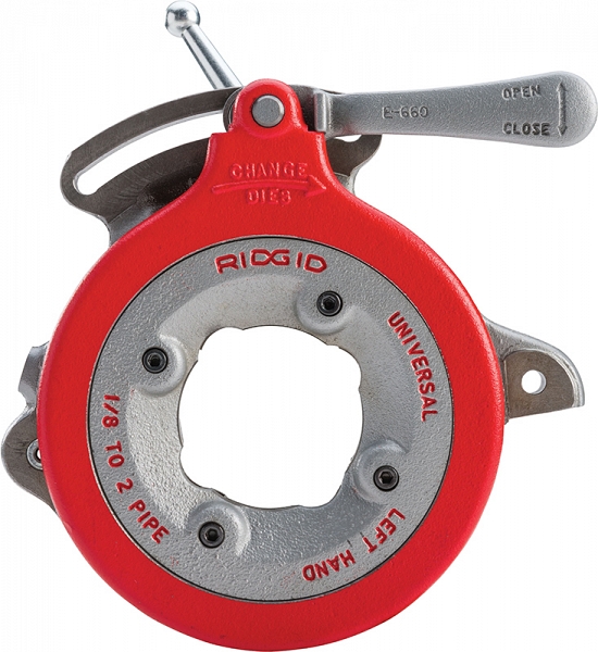 Ручная резьбонарезная голова для станка Ridgid 856 BSPT L (Риджид 856 БСПТ Л) предназначена для нарезки левой трубной конической резьбы BSPT L на трубах Ø 1/8" – 2" (6 – 50 мм) на резьбонарезных станках Ridgid 300, 300 Compact, 300-A с кареткой, 535, 535А, 1233 и других производителей в промышленной отрасли.