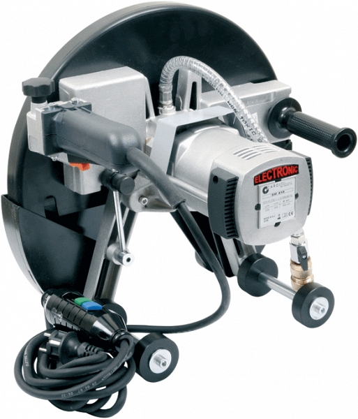 Электрическая ручная алмазная стенорезная машина (пила) Cardi SM-410 (Карди СМ-410) предназначена для алмазной резки бетона, природного камня и кирпичной кладки на глубину до 158 мм с подачей воды.