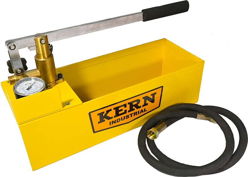 Ручной гидравлический опрессовщик Kern 60 бар (Керн 60 бар) – опрессовочный насос для быстрой и точной опрессовки труб систем отопления, проверки герметичности под давление трубопроводов и резервуаров в системах теплоснабжения, водоснабжения, канализации; в солнечных батареях; в системах сжатого воздуха; в системах, заполненных маслом; в холодильных установках; баллонов со сжатым газом; при производстве напорных резервуаров; при изготовлении бойлеров, в котлостроении; в разводке спринклеров, теплообменниках.