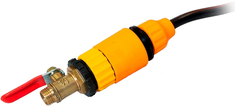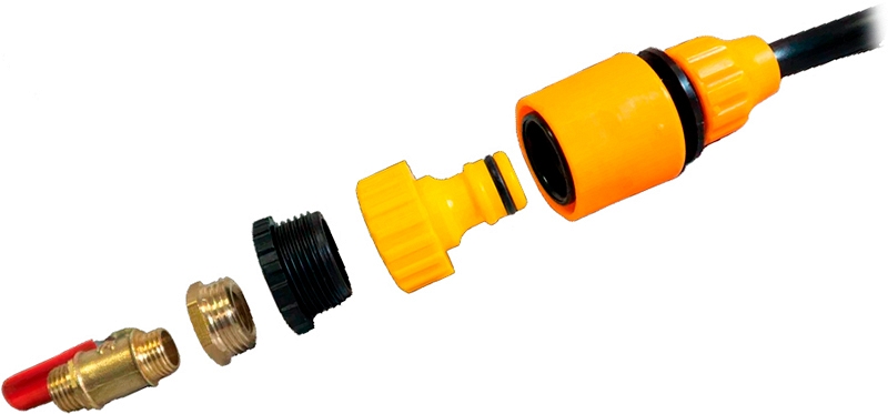 - Подсоедините гибкий шланг к водяному крану на установке алмазного бурения (предварительно закройте кран), с помощью соединительной муфты