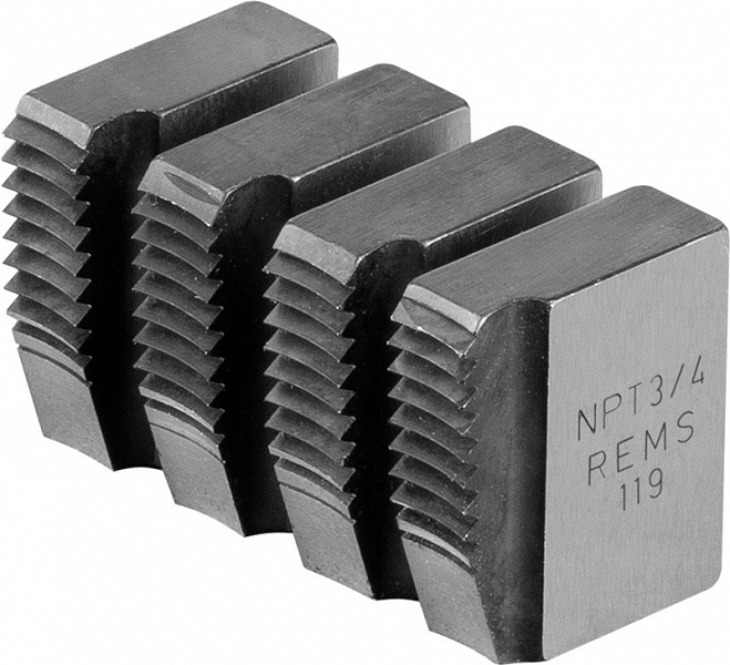 - Rems Eva Set NPT 1/2"-3/4". Ручной резьбонарезной клупп для трубной резьбы NPT 1/2", 3/4". Для правой резьбы. Один храповый рычаг для всего рабочего диапазона. Быстросменные резьбонарезные головки и плашки для правой трубной конической резьбы Taper Pipe Thread ASME B1.20.1 NPT 1/2", 3/4". В картонной упаковке.