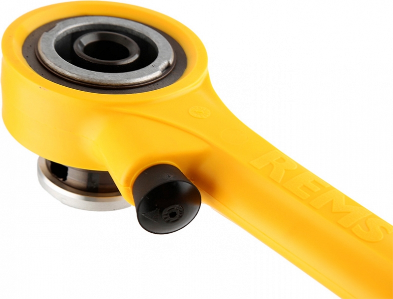 Всего один храповый рычаг для всего диапазона резки как до 1 1/4", так и до 2". Только один вид маленьких, компактных, быстросменных резьбонарезных головок и только один вид резьбонарезных плашек. Один вид резьбонарезных головок подходит ко всем клуппам Rems и соответствующим клуппам иных производителей. - Храповый рычаг: