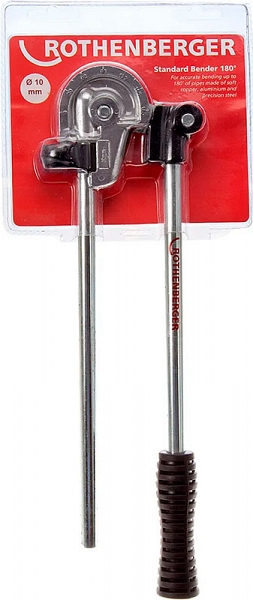 Ручной рычажный трубогиб Rothenberger 15 мм (Ротенбергер 15 мм) предназначен для точной холодной гибки двумя руками алюминиевых, мягких медных и тонкостенных стальных труб Ø 15 мм на угол до 180° в мастерских и на стройплощадках при монтаже разнообразных систем пневматики и гидравлики, вентиляции и кондиционирования, а также в машиностроении и холодильной технике.