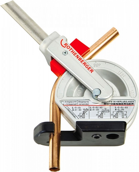 Ручной трубогиб Rothenberger Robend H+W Plus 12 мм (Ротенбергер Робенд Х+В Плюс 12 мм) предназначен для точной холодной гибки на угол до 180° мягких, твердых и тонкостенных медных труб, медных труб в оболочке, алюминиевых труб, латунных труб, тонкостенных стальных труб, тонкостенных стальных труб в оболочке, бесшовных нержавеющих стальных труб Ø 12 мм при монтаже сантехнических и холодильных систем, систем отопления и кондиционирования, а также на производствах.