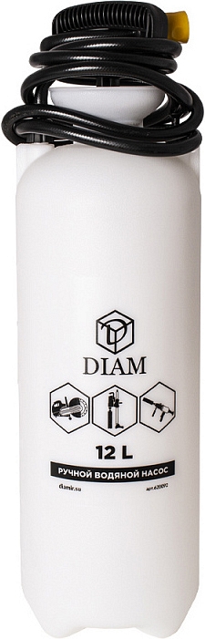 Ручной водяной насос Diam 12 L (Диам 12 Л) применяется с оборудованием для алмазного бурения и резки для подачи воды в зону сверления и резки для охлаждения алмазного инструмента.