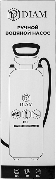 | 620095 | Diam 12 L | Ручной механический | Ударопрочный пластик | 3 бар | 12 л | 3 м | 200 × 200 × 685 мм | 2,6 кг |