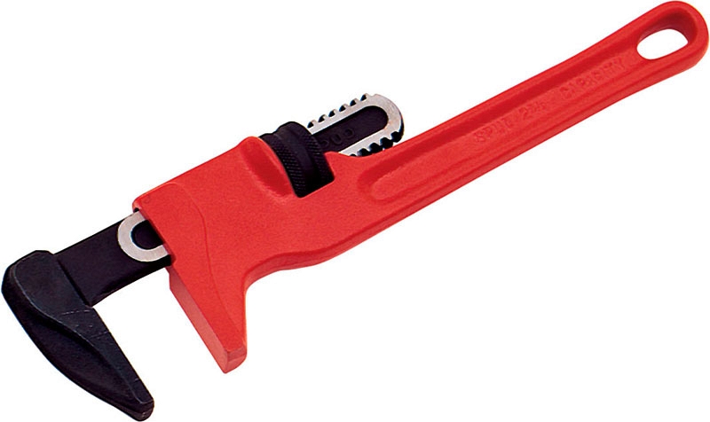 - Выполнен из ковкого чугуна с зажимными губками из кованой легированной стали: обеспечивает большую прочность, чем стандартные регулируемые сантехнические ключи