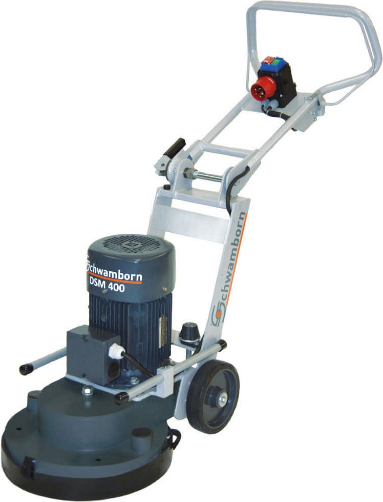 Шлифовальная машина по бетону Schwamborn DSM 400 (Швамборн ДСМ 400) для шлифования полов с диаметром обрабатываемой поверхности 400 мм – реставрационный шлифовальщик для плоского шлифования и полирования бетона, стяжки, промышленных полов, бесшовных и каменных полов (мозаики, мозаичных полов, природного камня, мрамора, гранита), паркета; удаления клея, шпаклевки; выравнивания неровностей пола; подготовки основания; удаления старого покрытия и многостороннего применения в реставрации полов.