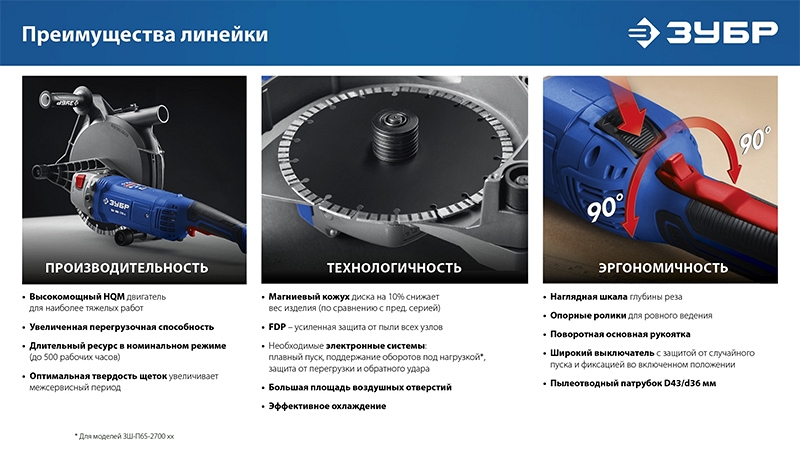 Преимущества штробореза Зубр Профессионал ЗШ-П45-2200 ПТ:
