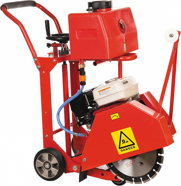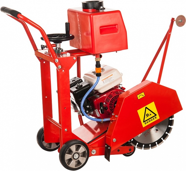 - Система принудительной подачи воды к режущему диску для оптимального охлаждения: комплектуется баком для подачи воды