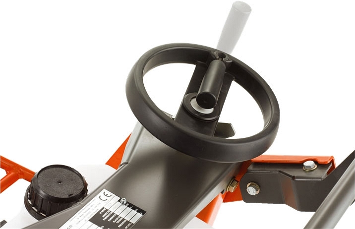 - Регулировка глубины режущего диска: маховик