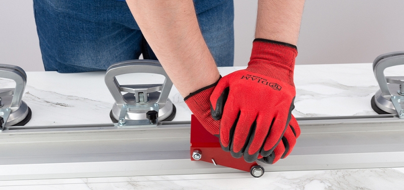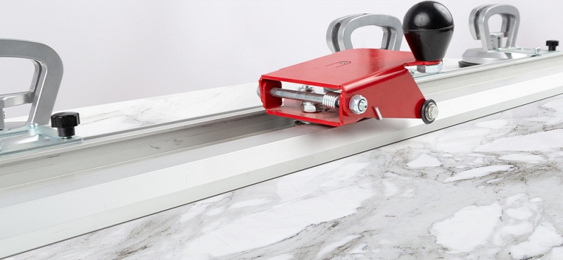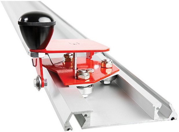 - За счет применения вакуумных присосок система жестко фиксирует положение направляющей на плите