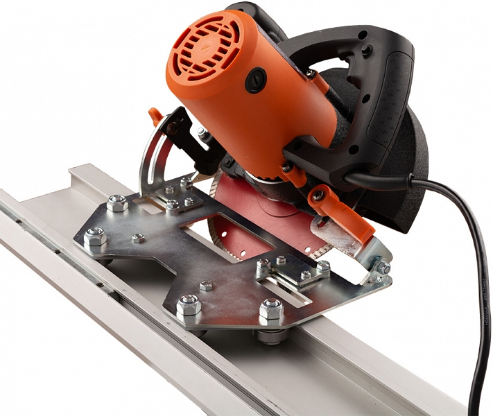 - Конструкция состоит из 2-х направляющих 1650 мм, каретки с режущим элементом, двигателя с алмазным диском, крепежных деталей для резки керамики с неровной поверхностью, щипцов для точного разлома, соединительных элементов и 4-х вакуумных присосок